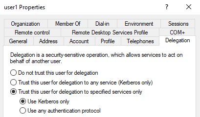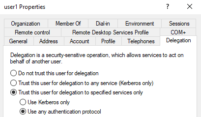 [-] Probably SPN is not allowed to delegate by user user1 or initial TGT not forwardableWhen attempting to exploit that technique, if the error above triggers, it means that either