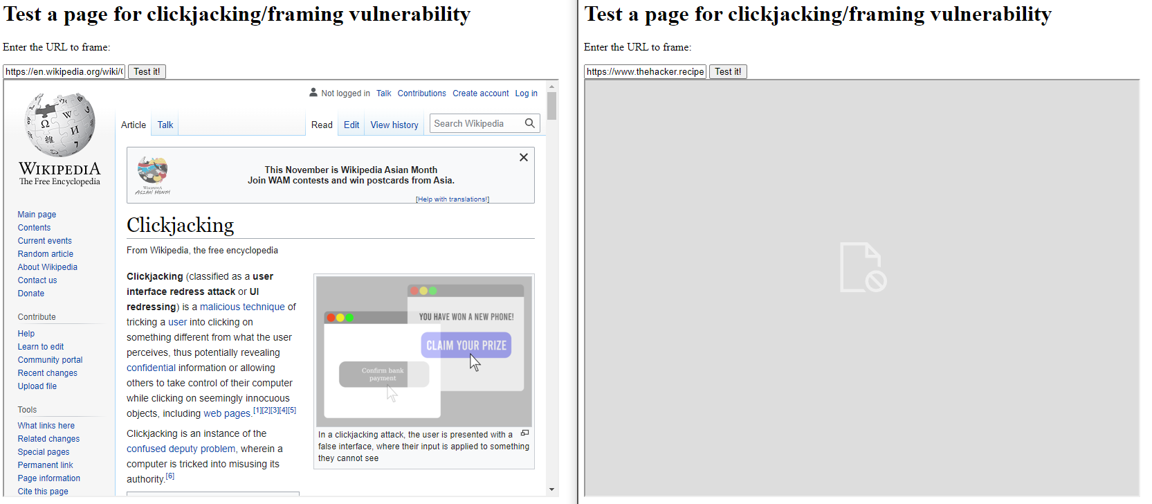 <h1>Test a page for clickjacking/framing vulnerability</h1>